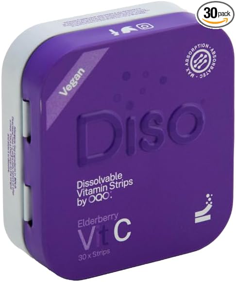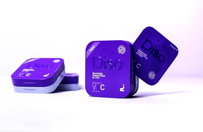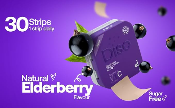 DISO - Vitamin C - Oral Dissolvable Supplement Strips, Elderberry Flavor, Boosts Immunity, Vegan, 0 Sugar, Maximum Absorption, Gluten Free, Individually Wrapped, 30 Ct
