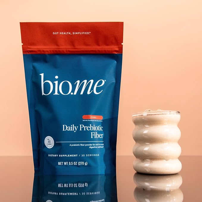 - DIGESTIVE SUPPORT: Take good care of your digestive health with Bio.me Daily Prebiotic Fiber supplement. This fiber powder combines two clinically-researched prebiotics, delivering 7g of soluble fiber per serving to support a balanced microbiome without causing bloating, gas, or cramping. This fiber supplement powder is perfect for both men and women and ensures gentle, effective relief.