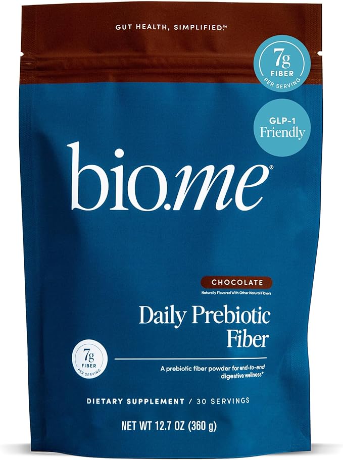 - DIGESTIVE SUPPORT: Take good care of your digestive health with Bio.me Daily Prebiotic Fiber supplement. This fiber powder combines two clinically-researched prebiotics, delivering 7g of soluble fiber per serving to support a balanced microbiome without causing bloating, gas, or cramping. This fiber supplement powder is perfect for both men and women and ensures gentle, effective relief.