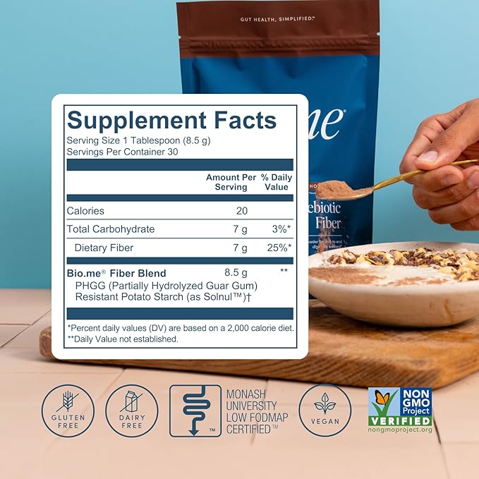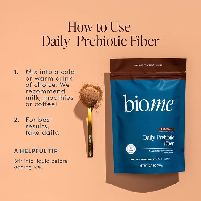 - VERSATILE AND CONVENIENT: Incorporating fiber into your diet has never been easier. Bio.me's prebiotic fiber powder is incredibly versatile, seamlessly mixing into warm and cold beverages, smoothies, and various foods. This tasteless dietary fiber supplement is perfect for daily use, making sure you get the digestive health support you need effortlessly.