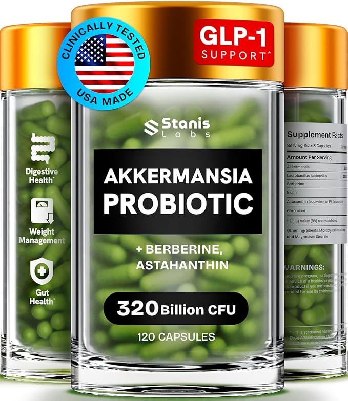 Akkermansia Probiotic 320 Billion CFU| GLP-1 Probiotic and Prebiotic | Akkermansia Muciniphila Probiotics For Women Digestive Health | Inulin Prebiotic Fiber Capsules Astaxanthin & Berberine 120 count
