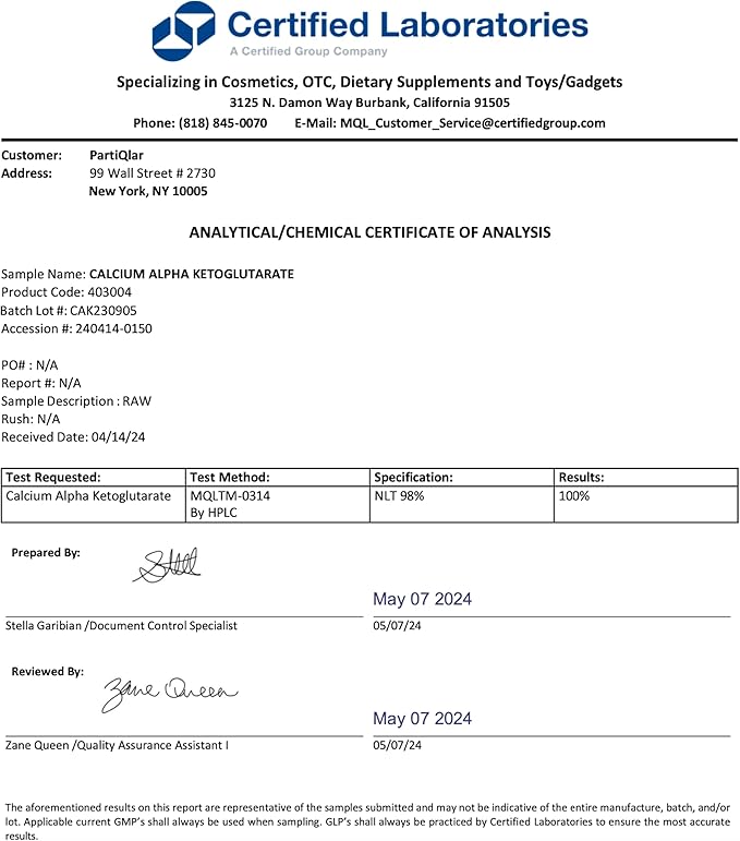 - QUALITY AND SAFETY ASSURED: CaAKG is free from allergens, produced in a GMP-compliant and FDA-registered facility, and undergoes rigorous third-party testing to ensure the highest quality standards for your well-being.