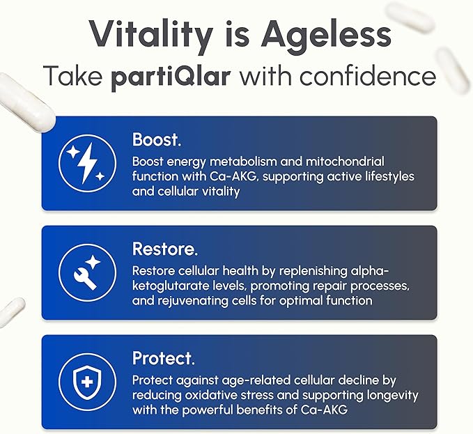 - REPLENISH AGE-RELATED AKG LEVELS: As you age, your body's natural levels of Alpha-ketoglutarate (AKG) often decline. Supplementing with Ca-AKG can help restore these levels, promoting healthy energy production, bone strength, and metabolic function as you navigate the aging process.