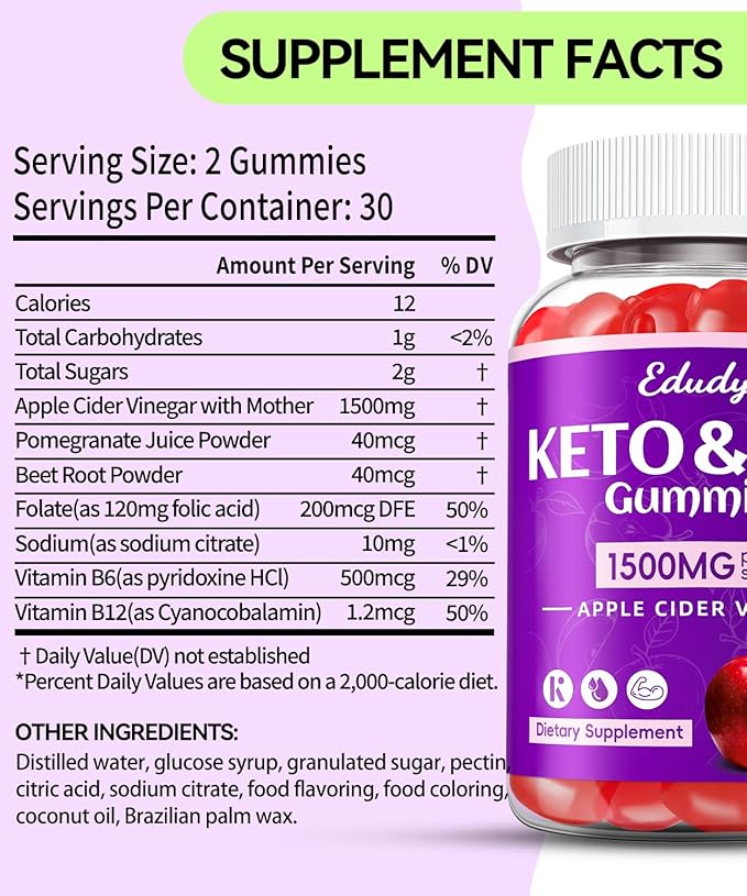 - Premium Formula for Daily Wellness: acked with 1500 mg of Apple Cider Vinegar per serving, our Keto ACV Gummies are enriched with pomegranate and beet juice to support your healthy lifestyle.