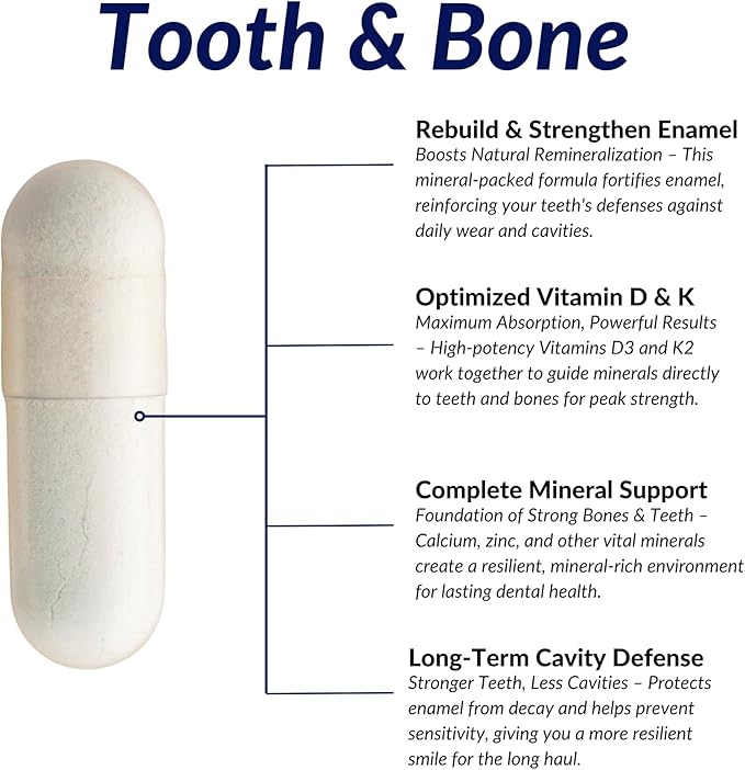 - HOLISTIC ORAL AND BONE HEALTH SOLUTION – Developed by Dr. Michelle Jorgensen, a leading holistic dentist, this formula promotes strong teeth and bones, supports overall dental health, and enhances vitality with every dose.