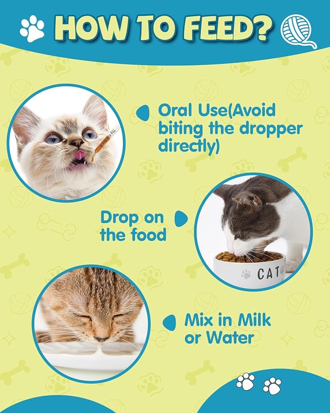 - Nutrient Intake Assistant: Compared to powders, tablets, and capsules, the liquid form of cat L-Lysine drops can assist with more thorough absorption, with a very simple daily supplementation routine, you can either feed the drops directly or mix them with food, milk, or water