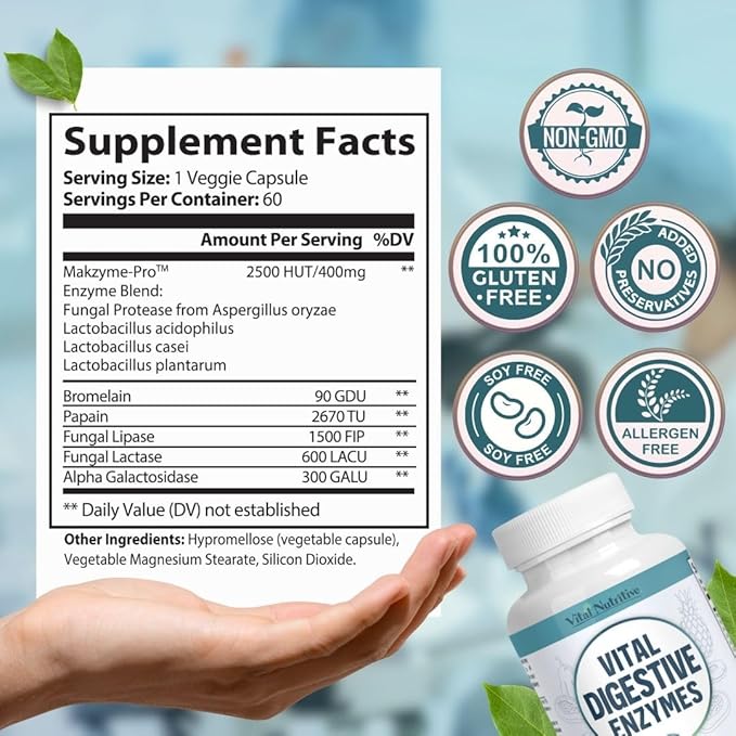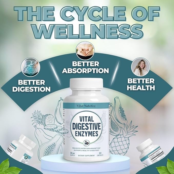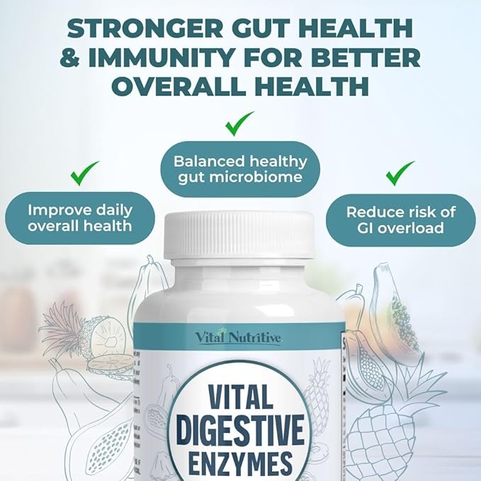- Relief from Bloating and Gas: Helps reduce occasional bloating, gas, and digestive discomfort. Our digestive enzyme blend supports balanced gut health and assists in maintaining daily energy levels, promoting a sense of wellness and vitality