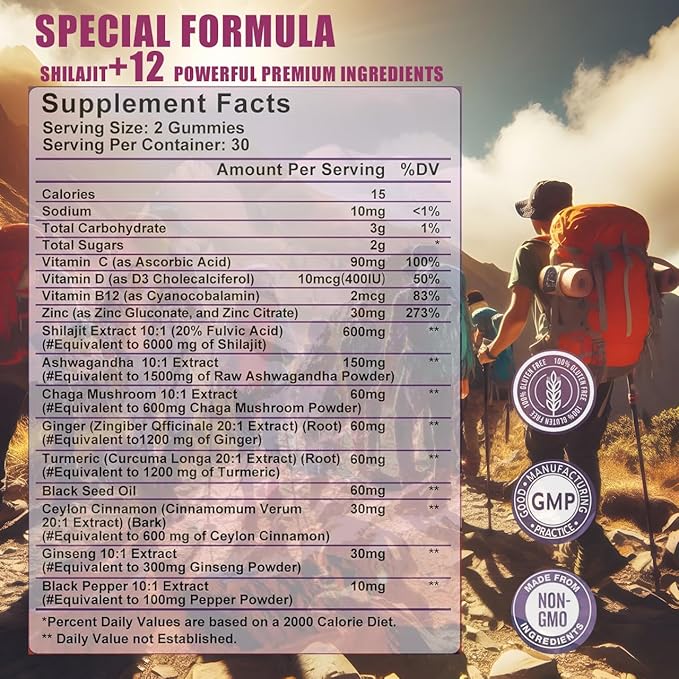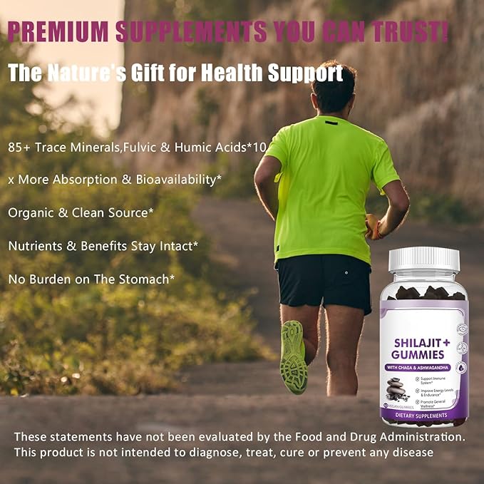 - DELICIOUS & EASY TO CONSUME: Enjoy the delicious apple-flavored gummies, which are vegan and non-GMO. Each bottle includes 60 gummies, perfect for daily use and easier to absorb than traditional Shilajit capsules or powders. Take them anywhere for a convenient boost to your energy and wellness.