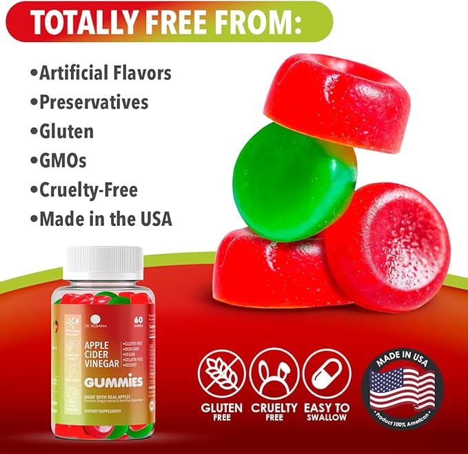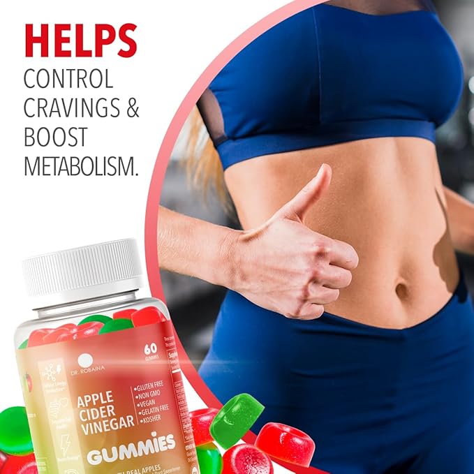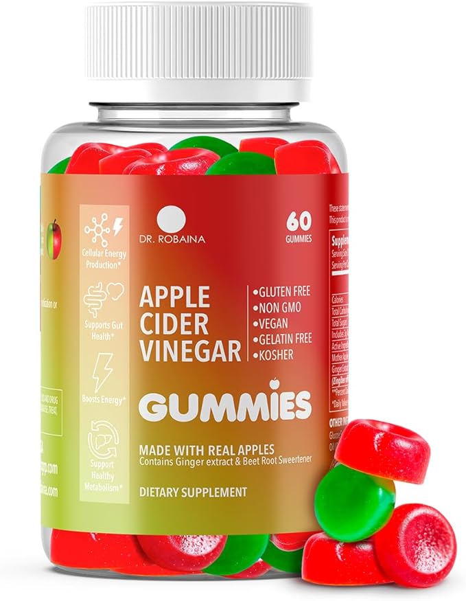 Dr. Robaina Apple Cider Vinegar Gummies – Supports Metabolism & Digestive Health – Vegan, Non-GMO, Gluten-Free – Made in USA