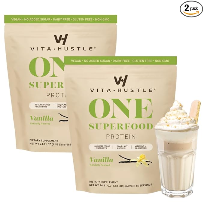- SATISFYING & SUPER DELICIOUS – Filling without the fillers, silky-smooth and oh-so-satisfying, ONE by VitaHustle is never chalky or clumpy. Enjoy it blended over ice with water or plant-based milk, or add it to your favorite smoothie! Use it as a meal replacement, snack or after workout recovery shake.
