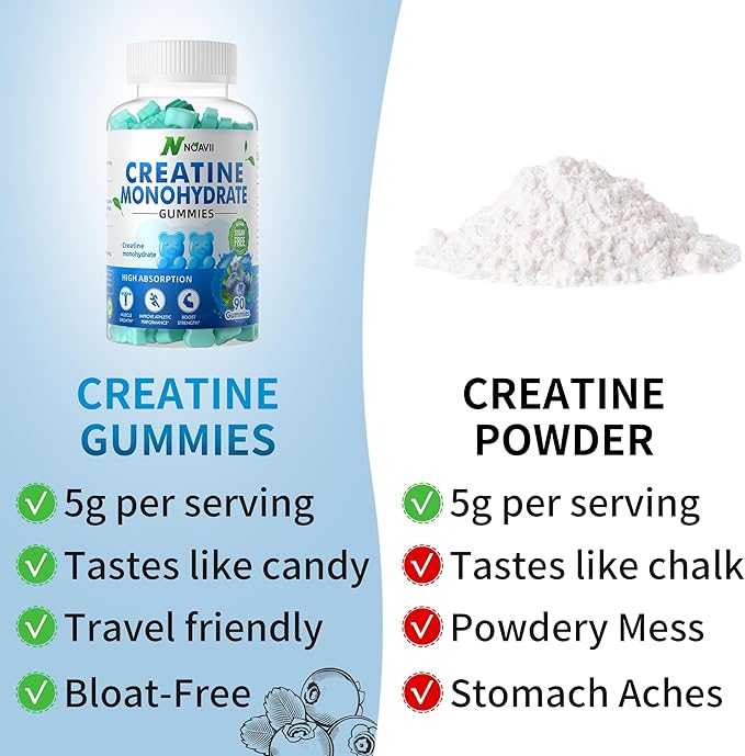 Creatine Monohydrate Gummies 5000mg for Men & Women, Chewables Creatine Monohydrate for Muscle Strength, Muscle Builder, Energy Boost, Pre-Workout Supplement-180 Blueberry Gummies