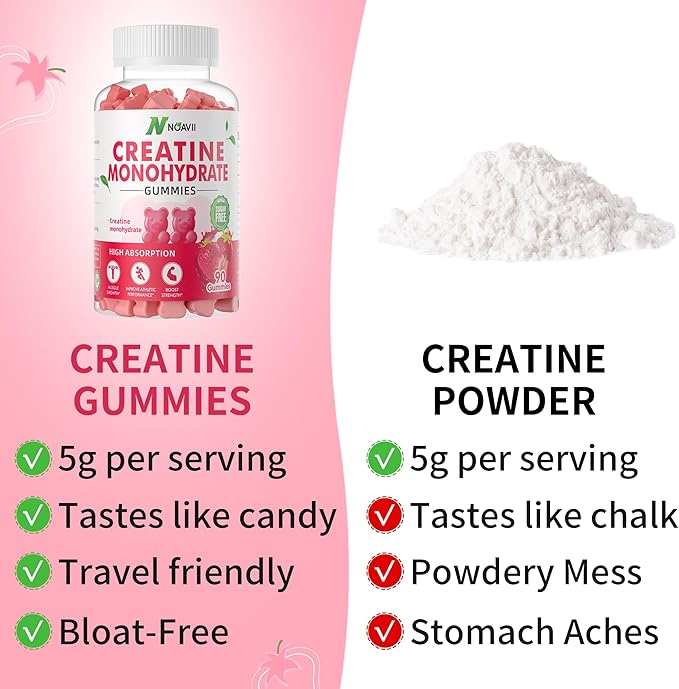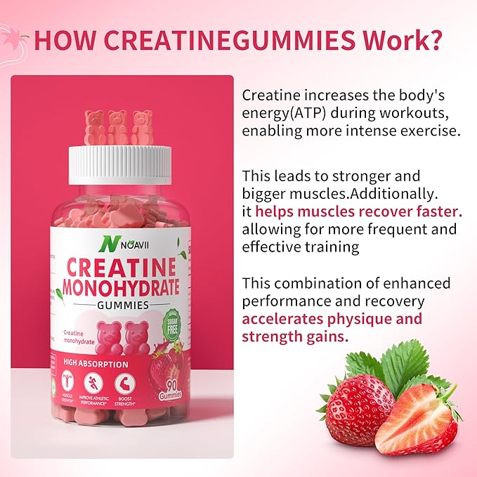 Creatine Monohydrate Gummies 5000mg for Men & Women, Chewables Creatine Monohydrate for Muscle Strength, Muscle Builder, Energy Boost, Pre-Workout Supplement-180 Strawberry Gummies