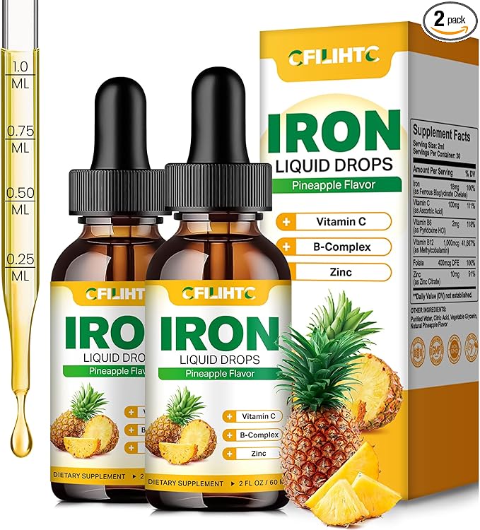 - Delicious Pineapple Flavor Drops for the Whole Family: Our iron liquid drops feature high-quality, 100% vegan, gluten-free, and non-GMO ingredients, making them a top choice for anyone seeking an iron supplement. Infused with natural pineapple flavor, these drops are suitable for kids, adults, women, and men alike.*