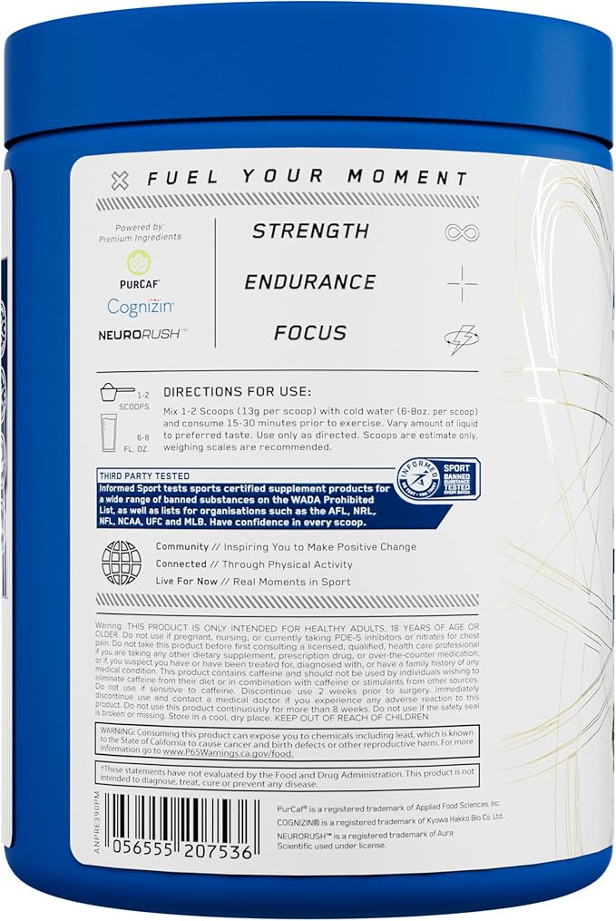 - NATURAL, SUSTAINED ENERGY: Experience clean, jitter-free energy with 300mg of natural caffeine from PurCaf organic coffee beans. Enhanced with NeuroRush for sustained performance, this formula reduces post-workout crashes and keeps you energized. The addition of 50mg L-Theanine helps balance the stimulatory effects for smooth, focused energy. Perfect for morning or evening workouts, AN Performance keeps you in control while fueling peak performance every session.