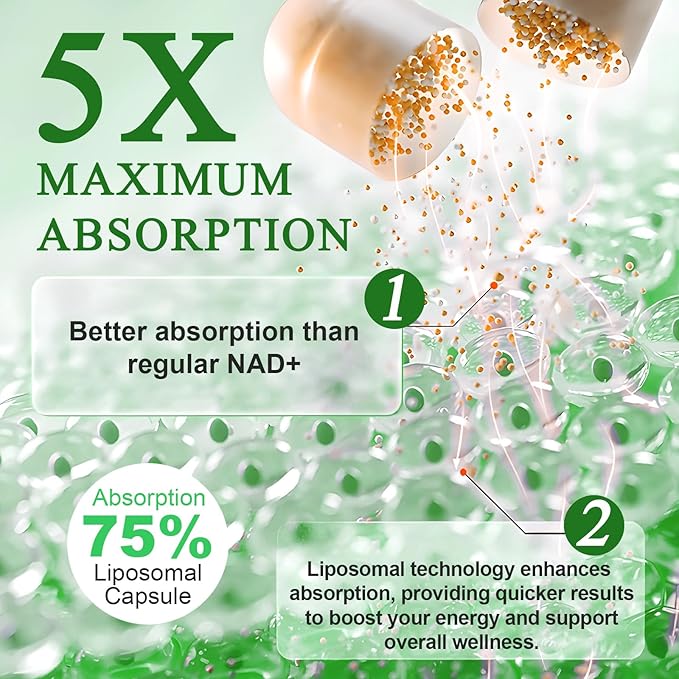 - 【Accelerate Muscle Recovery】: NAD+ Supplement 910mg For fitness enthusiasts and athletes, NAD+ Supplement helps improve endurance and accelerate post-workout recovery. Nicotinamide Riboside enhances energy metabolism, making it easier to push your limits and recover faster after intense physical activity.