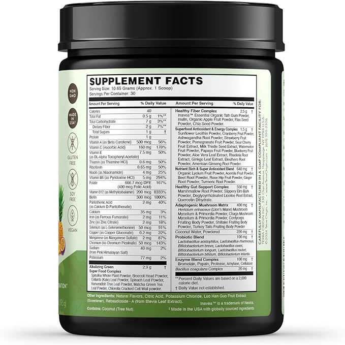 TERRA ORIGIN Healthy Greens Powder, Superfoods, Probiotics, Enzymes, Immune & Digestive Support, Energy & Wellness Boost, Gut Health, 30 Servings (1-Pack, Tropical Passionfruit)