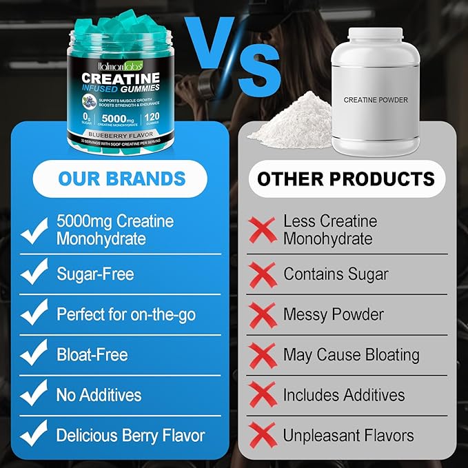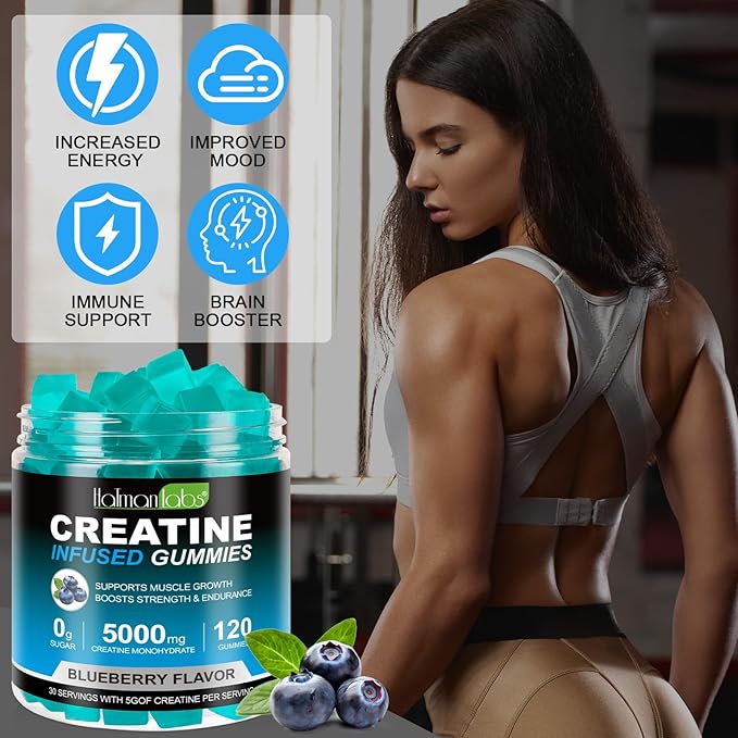 - VEGAN GUMMIES - these fitness gummies are designed to align with your nutritional choices.Vegan, No-Gelatin, 0g Sugar: Each bottle contains 120 count of vegan, non-GMO, and No-gluten creatine monohydrate gummies that are also 0g Sugar. Say goodbye to bulky creatine powders and the hassle of measuring scoops. Our gummies are far from chalky textures or messy scoops. Bursting with juicy berry flavors, they turn your daily creatine intake into a delightful treat.