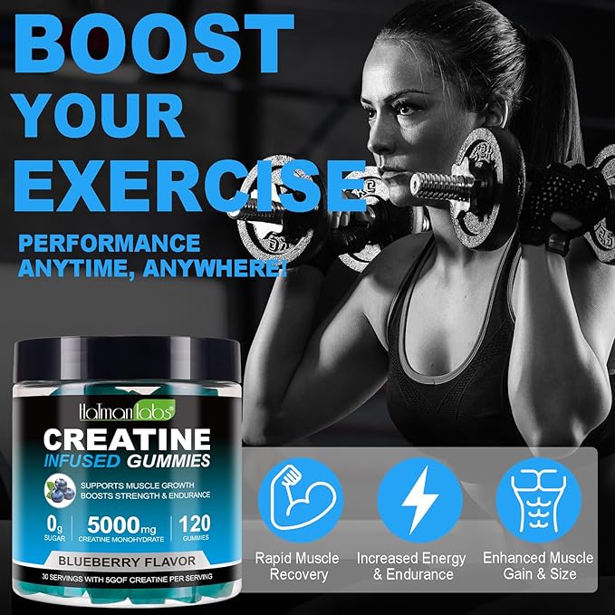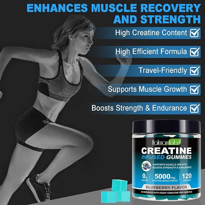 - CREATINE MONOHYDRATE GUMMIES:Creatine is one of the most effective, safe, and well-studied supplement to improve performance,increased muscle endurance,muscle growth or recovery. Just 4 gummies per serving to meet your daily 5g creatine requirement. Get ready to get bigger, stronger, and push beyond your limits — naturally.