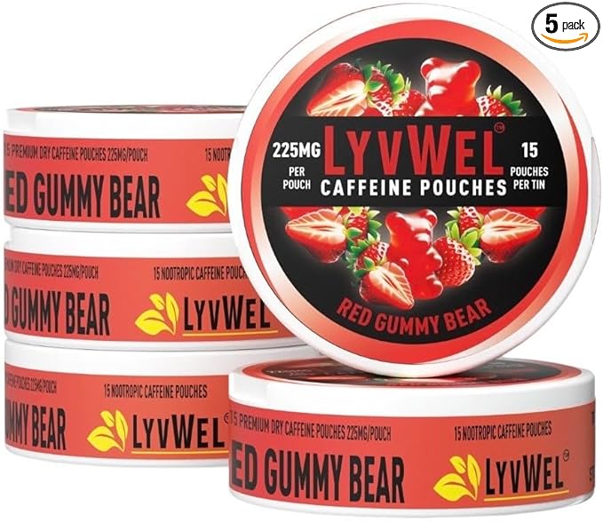 225mg Caffeine Energy Pouches | Nootropic Focus & Neuro Support | Tobacco-Free, Nicotine-Free, Quick Energy Solution | 5-Pack: 60 Pouches (5 Pack, Red Gummy Bear)