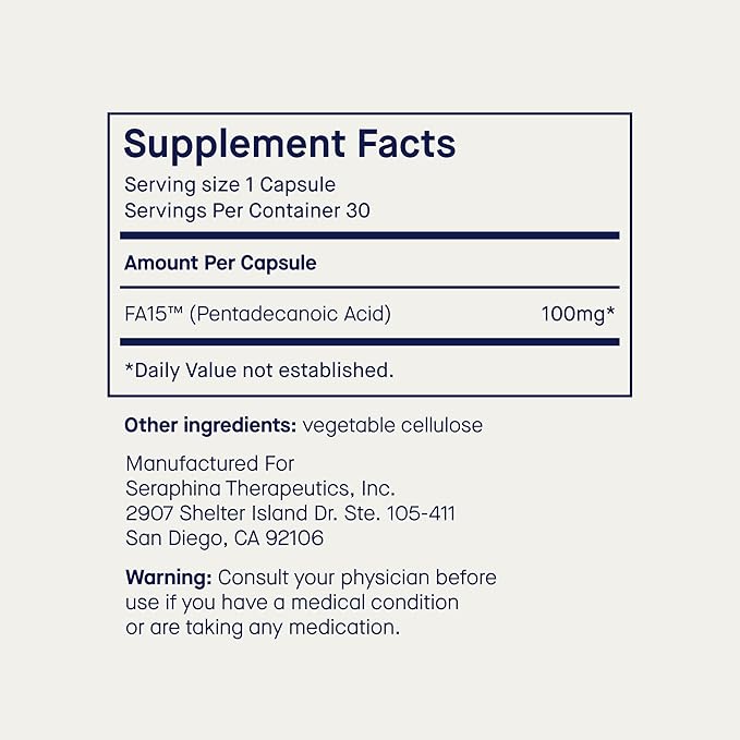 - POWERED BY C15:0 (PENTADECANOIC ACID): The first essential fatty acid to be discovered in over 90 years. This award-winning longevity supplement, developed by scientists over 10 years in collaboration with the U.S. Navy, has 3x more cellular benefits than pure omega-3 (EPA). C15:0 strengthens cells by 80%, improves mitochondrial function by 45% and repairs cells to slow aging-related breakdown and protect long-term health. Clinical Study References: Venn-Watson & Butterworth PLOS ONE 2022