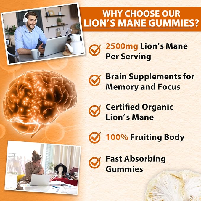 - Lions Mane are Your Smart Choice — Our lions mane mushroom gummies are beneficial for the brain, helping you maintain focus and clarity. They aid in benefits for focus, clarity, memory, immune and energy, and help you stay sharp. Trust that these mushroom gummies are your reliable cognitive companions. Whether you are a student, an office worker, or simply want to maintain the best state of your brain, these lions mane mushroom gummies are perfect for you. These are the best memory supplements and focus supplement