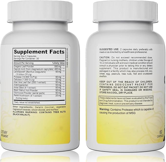 - Advanced Formula: Containing key ingredients such as oregano leaf, capylic acid and black walnut, this cleanse helps reduce the discomfort of occasional bloating while promoting a healthy gut environment and digestive comfort.