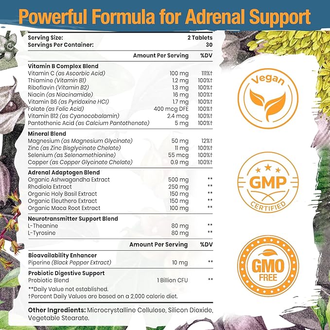 - Adrenal Fatigue Supplement: Energy pills are made with a vegan, non-GMO and gluten-free formula that adheres to strict GMP standards to designed for support adrenal restore