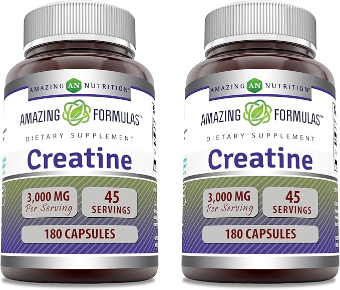 Amazing Formulas Creatine Monohydrate 3000 Mg Per Serving Capsules Supplement | Non-GMO | Gluten Free | Made in USA (2 Pack)