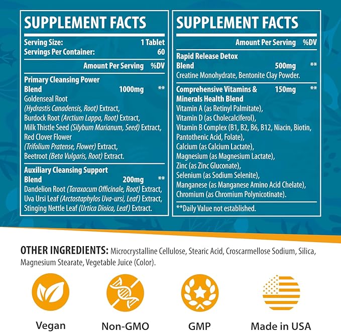 - Safety Guarante:Made with premium ingredients and carefully selected herbs, our cleanser detox is produced to the highest standards, ensuring purity and potency. Each bottle contains 60 vegan tablets (2 cm in size), which can be chewed,and cut in half swallowed with water for easy consumption. Enjoy a reliable and effective detox experience with every serving.