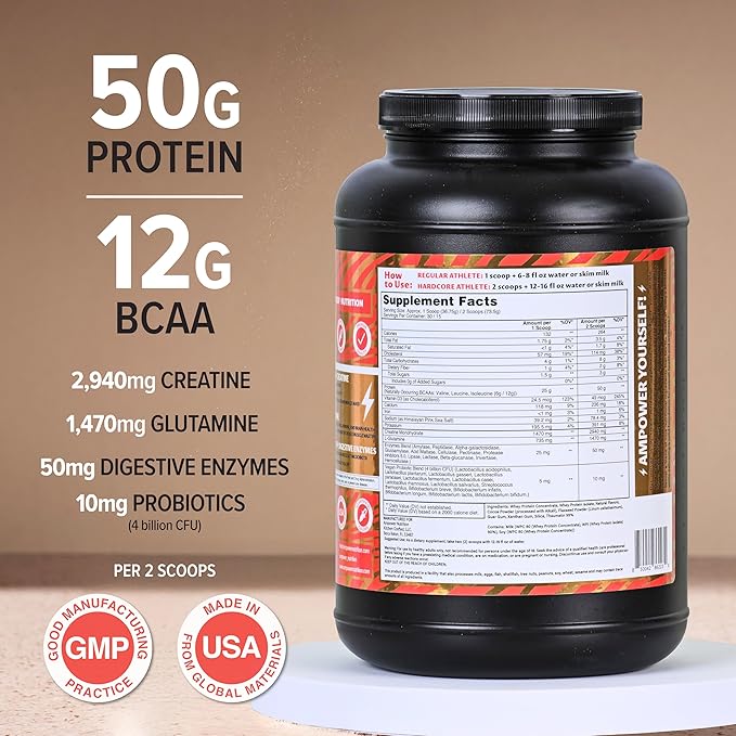 - Probiotics & Digestive Enzymes: Boost digestion and nutrient absorption with AMPower, enhanced with 10mg of 4 billion CFU probiotics and 50mg of digestive enzymes. Encourage consistent gut wellness and maximize protein benefits.