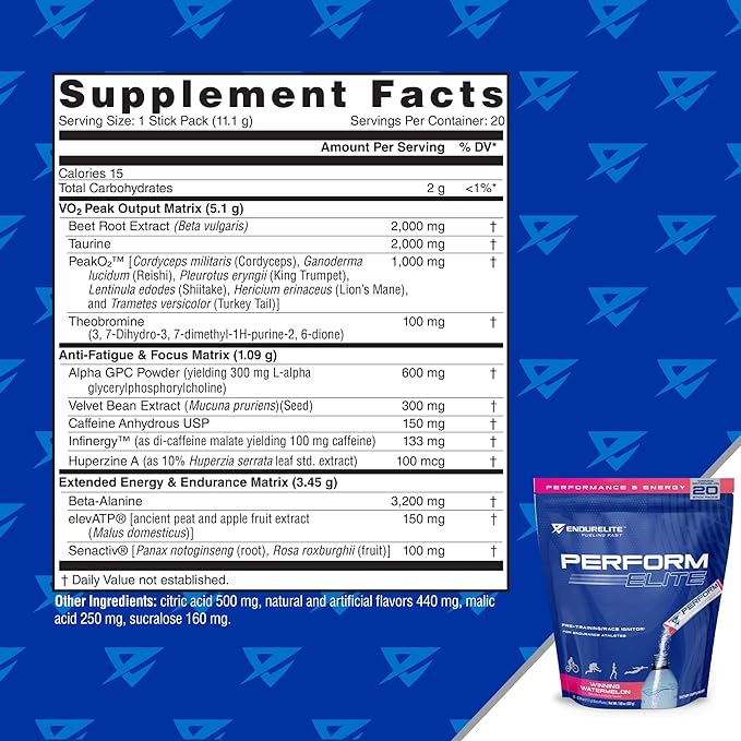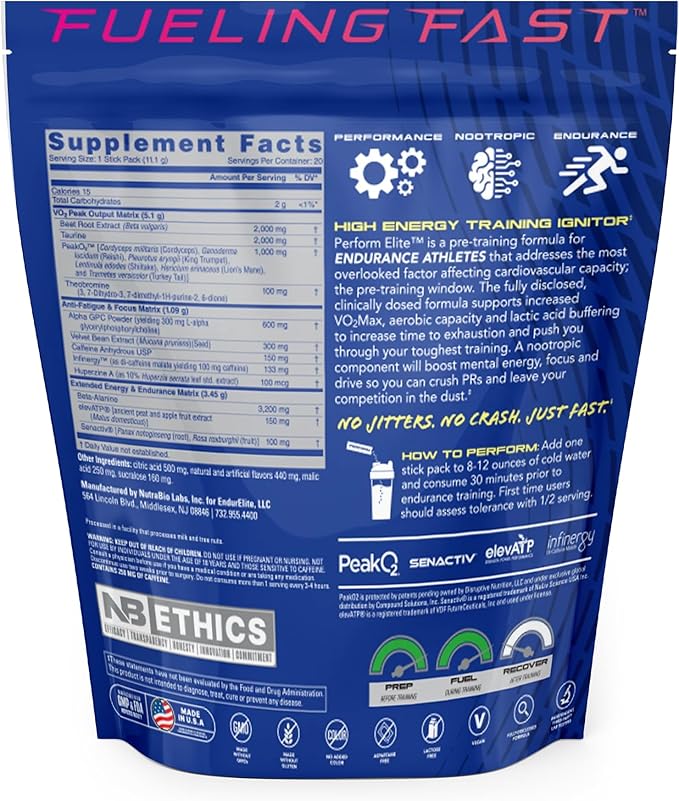 - Maximize VO2Max and Aerobic Capacity: Boost your cardiovascular performance with EndurElite Perform Elite, helping you train harder and longer by improving oxygen efficiency and endurance levels.