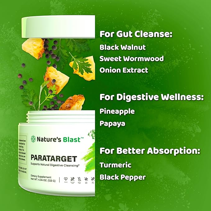 ParaTarget - Gut Cleanse Powder Supplement - Intestinal Gut Health Formula with Black Walnut, Wormwood, Turmeric & More - Natural Wellness Supplements for Women & Men - 30 Servings