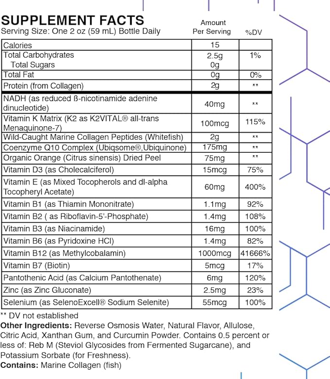 Strong Cell | Cellular Function Booster Liquid | NADH, CoQ10, Collagen. 90+% Absorption Rate. Vitamins B1, B2, B3, B6, B7, and B12. Vitamin K2.