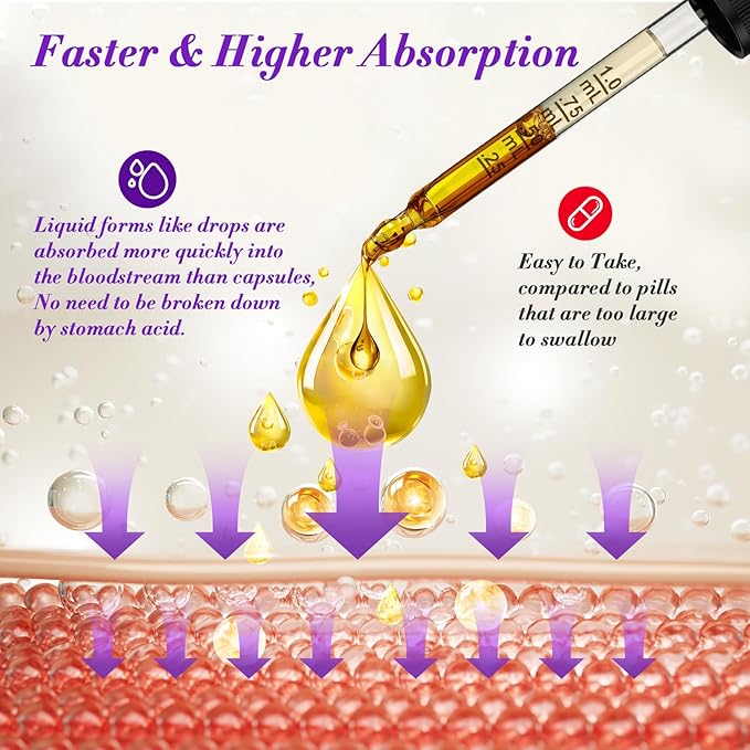 - Faster Absorption, Better Results: Our unique liquid drops with hair growth vitamins ensure rapid absorption, delivering nutrients directly to your system faster than traditional pills. Enjoy quicker and more effective results for healthier hair, glowing skin, and strong nails.