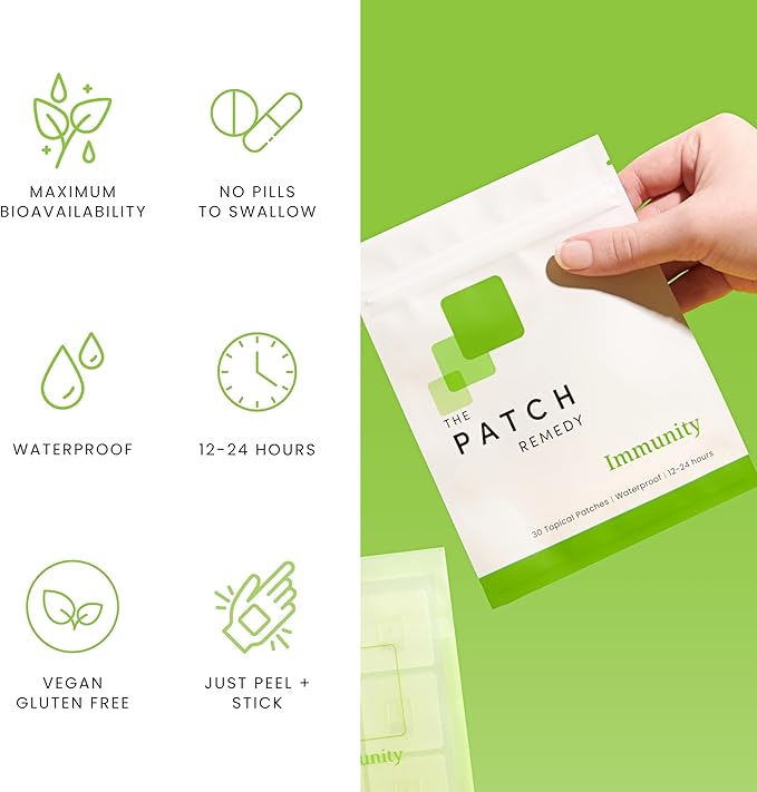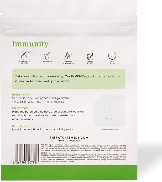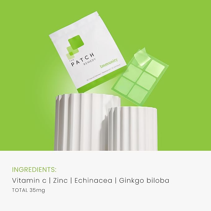 - NATURAL IMMUNE PATCHES - The Patch Remedy's Immune Patch is packed with immune ingredients: Vitamin C, Zinc Echinacea, and ginkgo biloba.