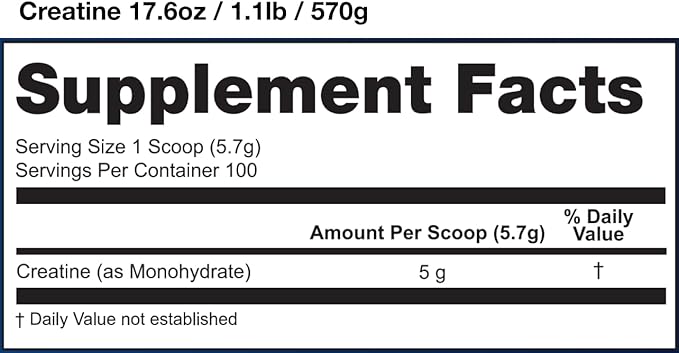 - MUSCLE GROWTH & RECOVERY: Each serving delivers 5g of pure creatine monohydrate, supporting increased muscle mass and faster post-workout recovery. Our high-quality creatine supplement aids in improving overall strength and power output, perfect for athletes and fitness enthusiasts. Rich in ATP-producing creatine, our supplement supports improved exercise performance, athletic performance and endurance during high-intensity exercise, resistance training and other workouts. ATP is a source of energy that your cells use when you exercise. Creatine supplementation supports lean body mass and a healthy body composition.
